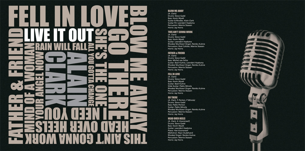 In 2007 Le Studio created the design for the (now) legendary album Live It Out, from singer/songwriter Alain Clark. Nearly 200.000 copies sold in only The Netherlands.